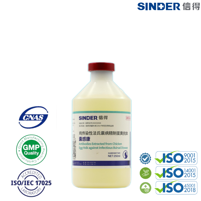 4. Этот продукт содержит несколько видов антител против нескольких патогенПомимо инфекционной бурсальной болезни (ВЗК). Запрещается вакцинация живыми вакцинами от ИБК, болезни Ньюкасла (БН), инфекционного бронхита (ИБ) и т. д. в течение пяти дней после применения этого продукта.